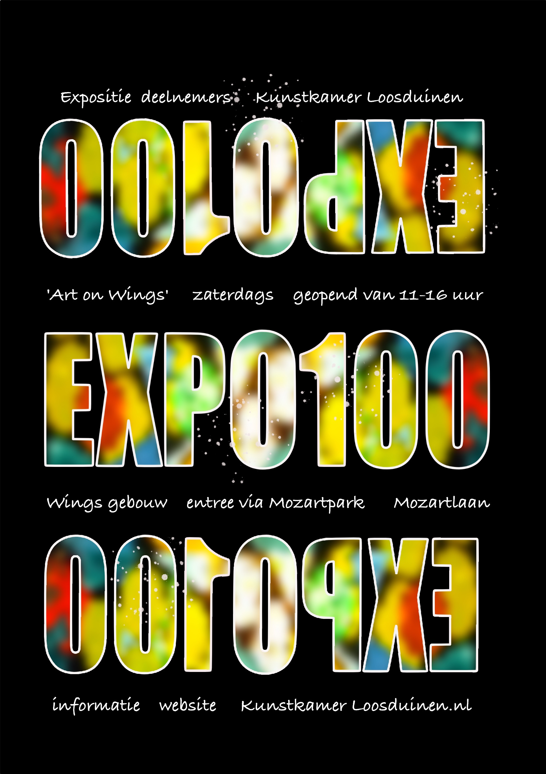 ART on Wings; de laatste plekken voor schilderijen, objecten en nog veel meer worden deze dagen nog gevuld om de EXPO100 te realiseren; een kakofonie aan kleuren, technieken en toepassingen in steen, op doek, geborduurd, geschilderd of in collages van verschillende technieken op papier, fotografie, canvas of digitaal; kom zelf maar kijken naar zowat honderd werken van de deelnemers van de Kunstkamer Loosduinen!