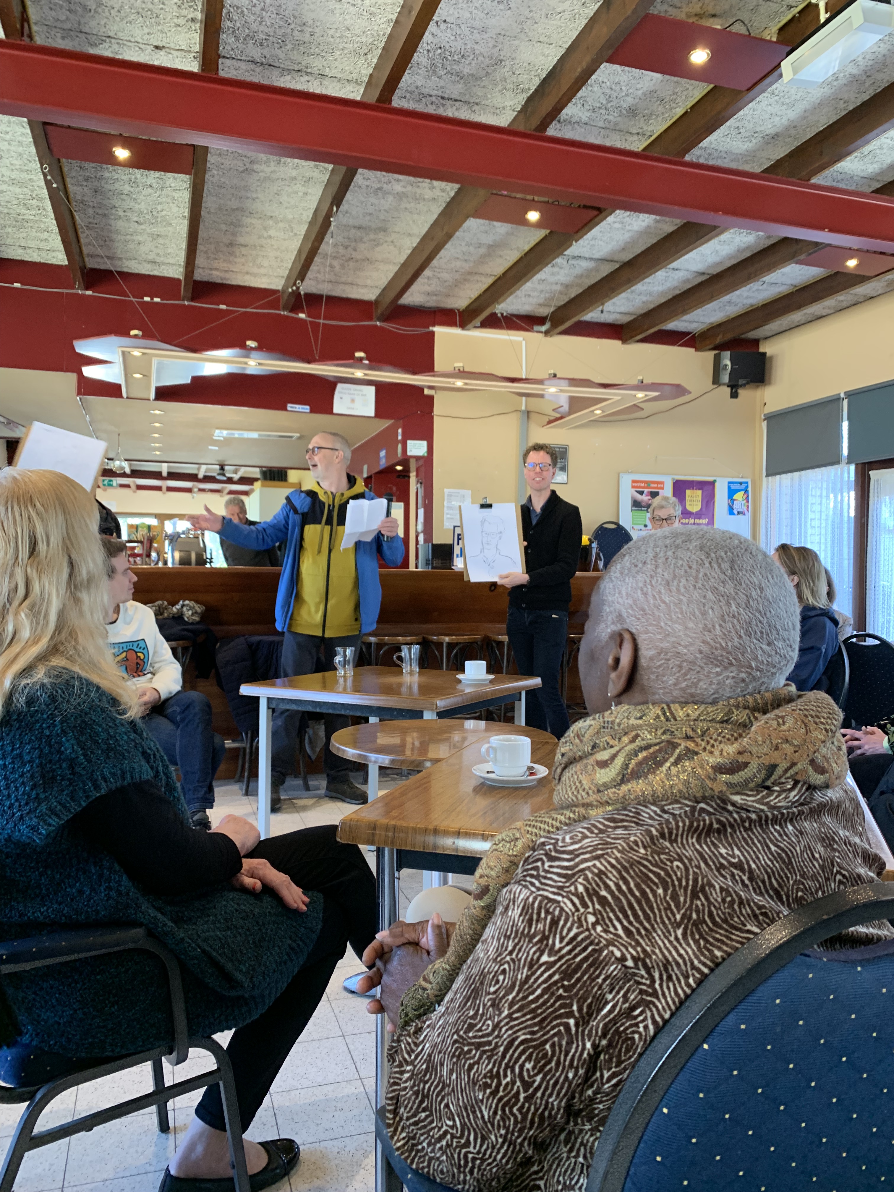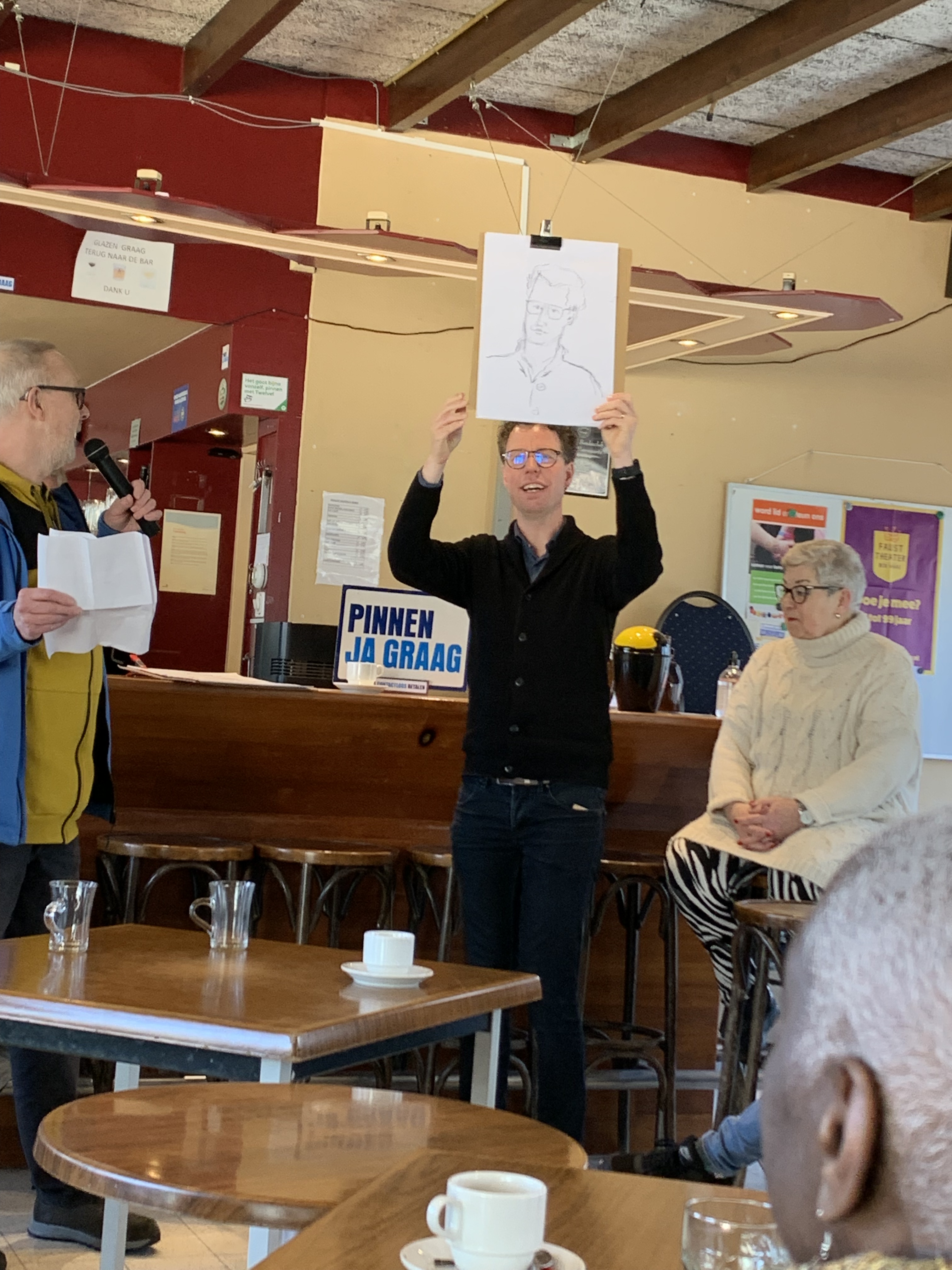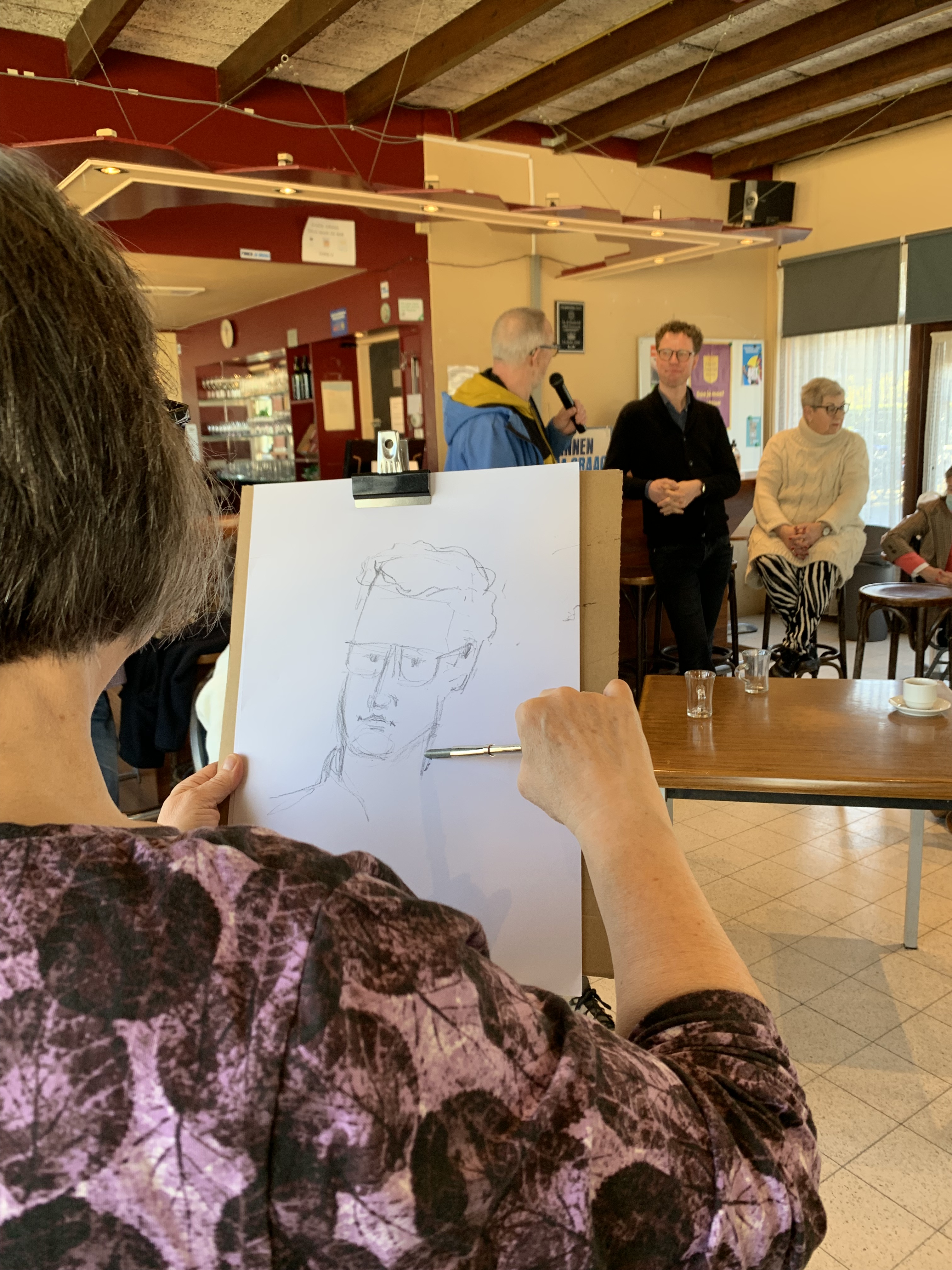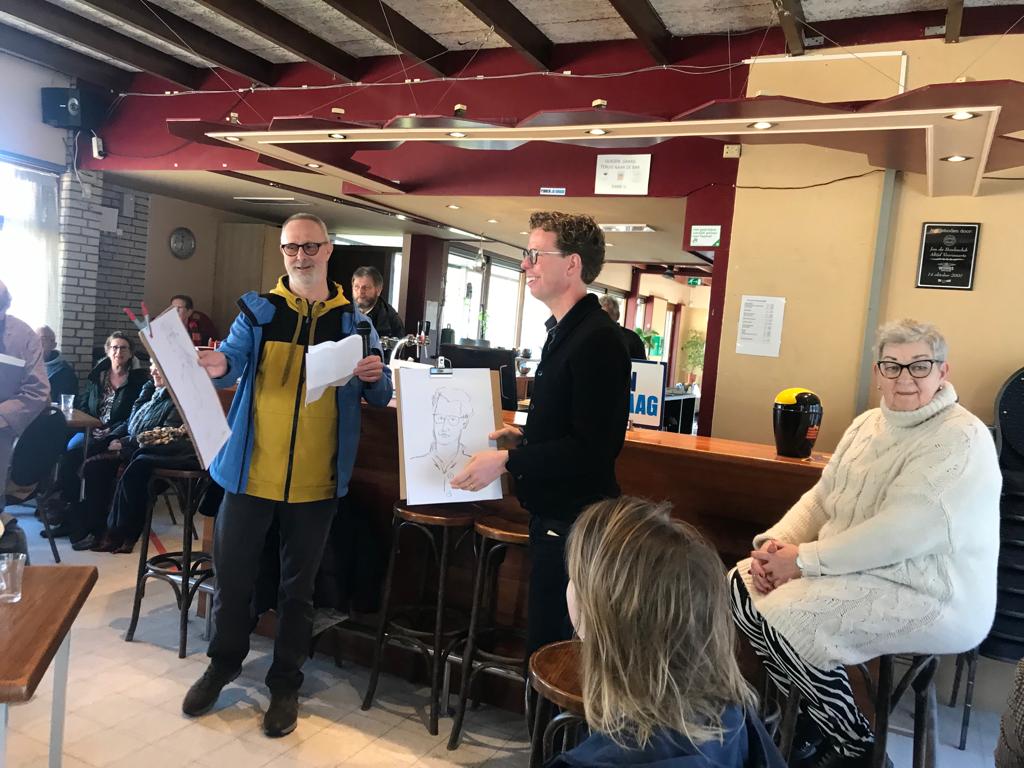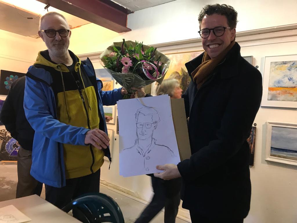 Muzikale ontvangst door de muzikanten van Circo Sollievo en een korte wandeling door het nieuwe Mozart Park en bezoek aan de moestuin, werd de Haagse wethouder van Wonen en Welzijn Martijn Balster toegesproken door de voorzitter van de Kunstkamer Loosduinen, Theo Westerduin en door projectleidster Petra Brekelmans. Na de toespraken mocht de wethouder zijn eigen snel geschetste teken-portret toevoegen aan de expositie!