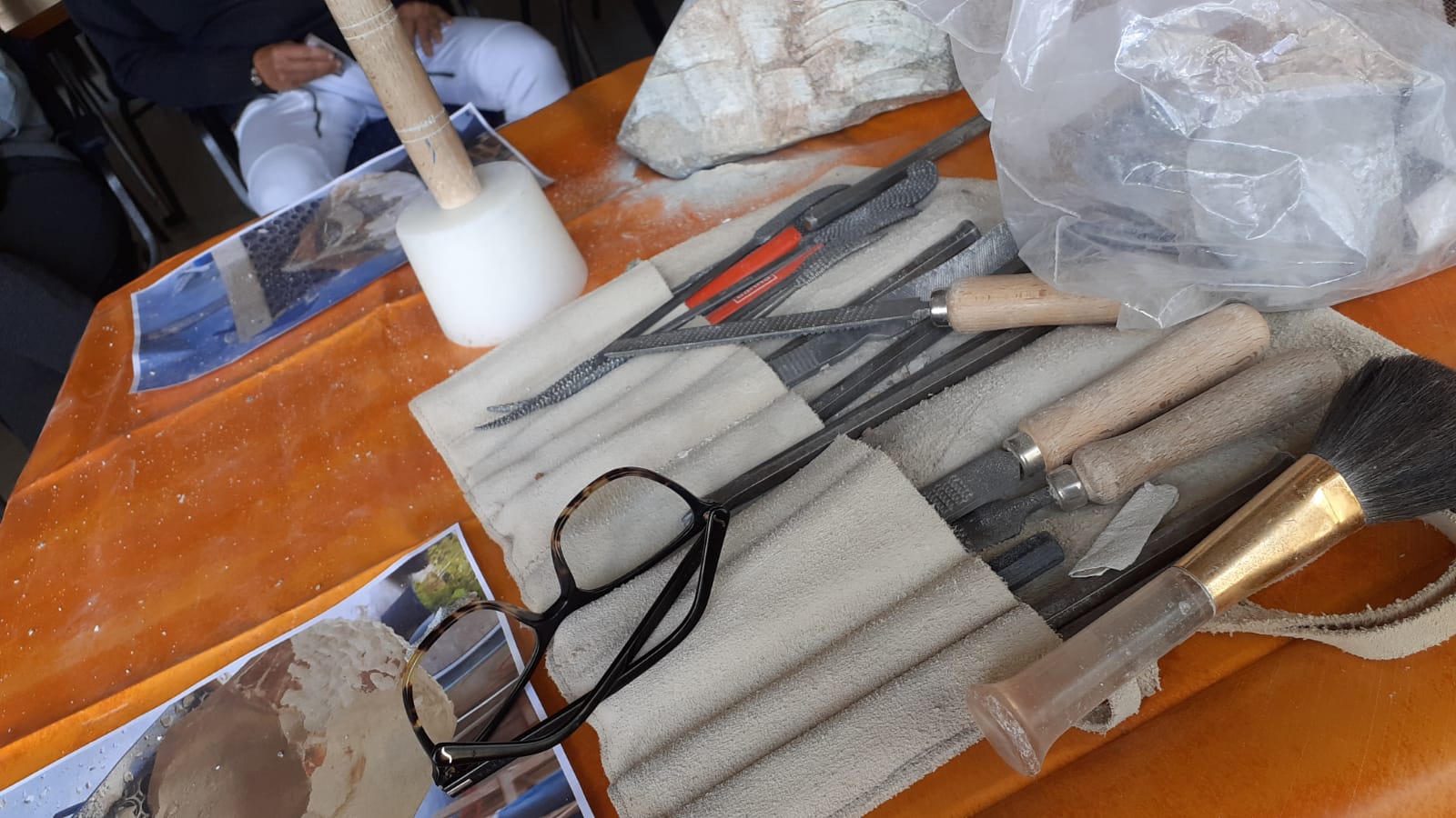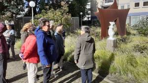 ‘Kan ik hier dan ook les krijgen?’ Die vraag werd geregeld gesteld in de expositieruimte van de Kunstkamer Loosduinen. Met de folder ‘DOE MEE!’ werd een introductie cursus voorgesteld van 5 zaterdagen, met elke keer een andere docent, discipline of techniek. Informatie lag in de expositie ruimte en werd verspreid op de Kunstmarkt in het Mozartpark. De cursus zat al snel (te) vol. Na 22 papieren aanmeldingen zijn 15 enthousiaste cursisten verleden week gestart. Zaterdag 1 oktober van 11-12.30 uur was vooral kennismaken met elkaar, een demonstratie beeldhouwen van Joke Bianchi en samen met Desiree Farret Jentink een bezoek aan een beeldentuin. Alle cursisten kregen een eigen schetsboek mee, voor gebruik bij de cursus. Wat staat er de andere zaterdagen op het programma?