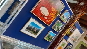 Op de parterre schilderijen van Bert van Boheemen, Malena van de Graaf, Mieke van der Leeden, Johanna van der Hoogt, Frans Krapels, Wim Davidse, aquarellen van Annelies Overdijk en Petra Bos en werk van Anna Zuidhof, Immie Schilt, Mia Meijer en sieraden van Wilma Bos in de vitrines.