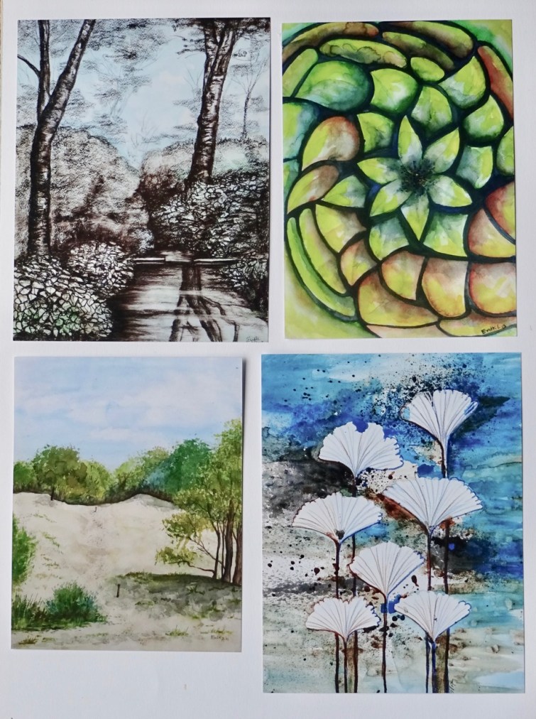 De inspiratie voor mijn werk komt meestal uit de natuur. De werkstukken die ik maak zijn figuratief en non figuratief. Meestal werk ik op papier met acryl- of aquarelverf en soms maak ik collages. Ook werk ik wel eens met klei en/of hout. De basis van mijn creatieve activiteiten is de opleiding interieur architectuur aan de K.A.B.K. te Den Haag en de opleiding Creatieve Handvaardigheid. In de albums op mijn Facebook pagina is al mijn werk te zien.
