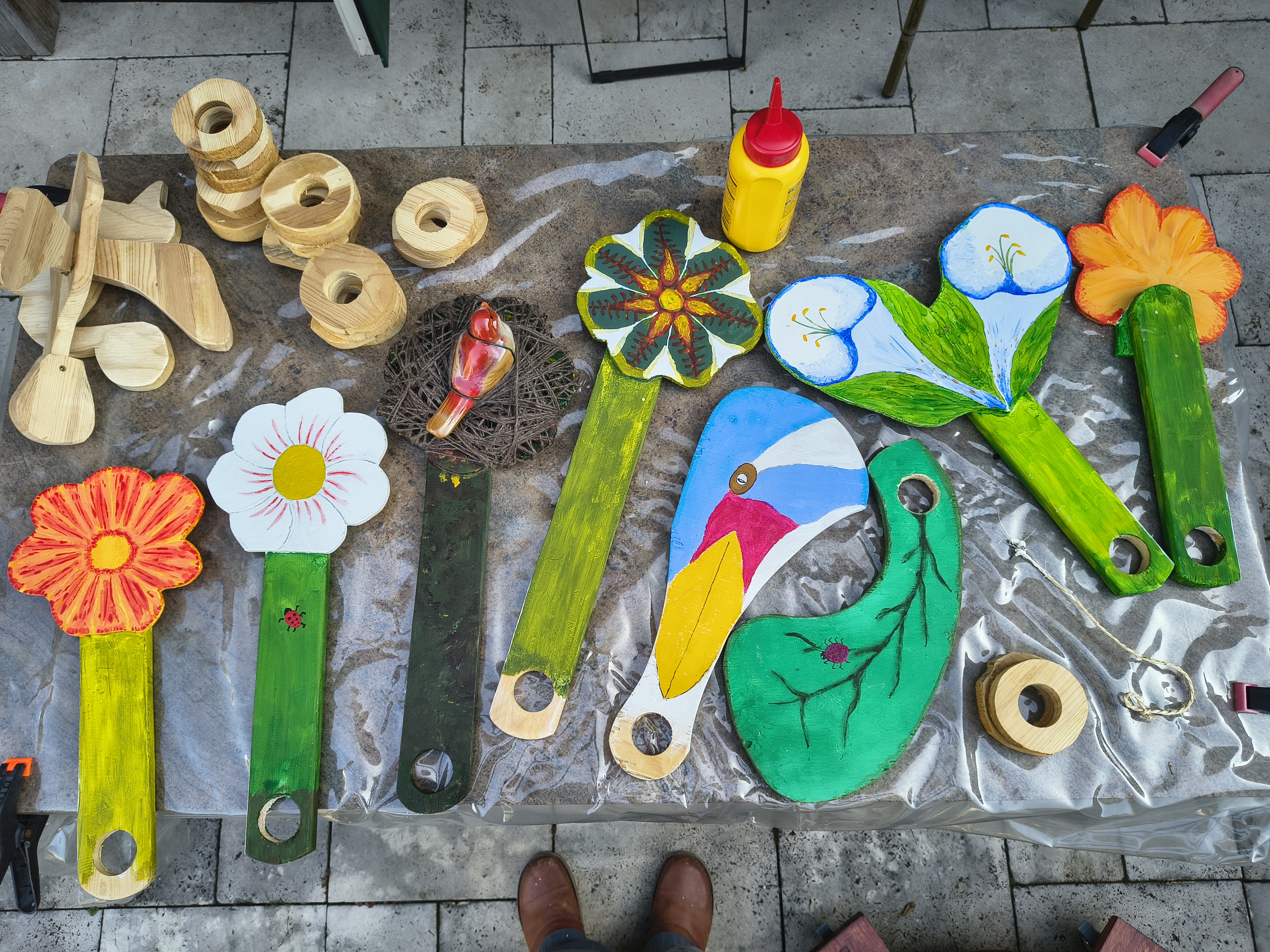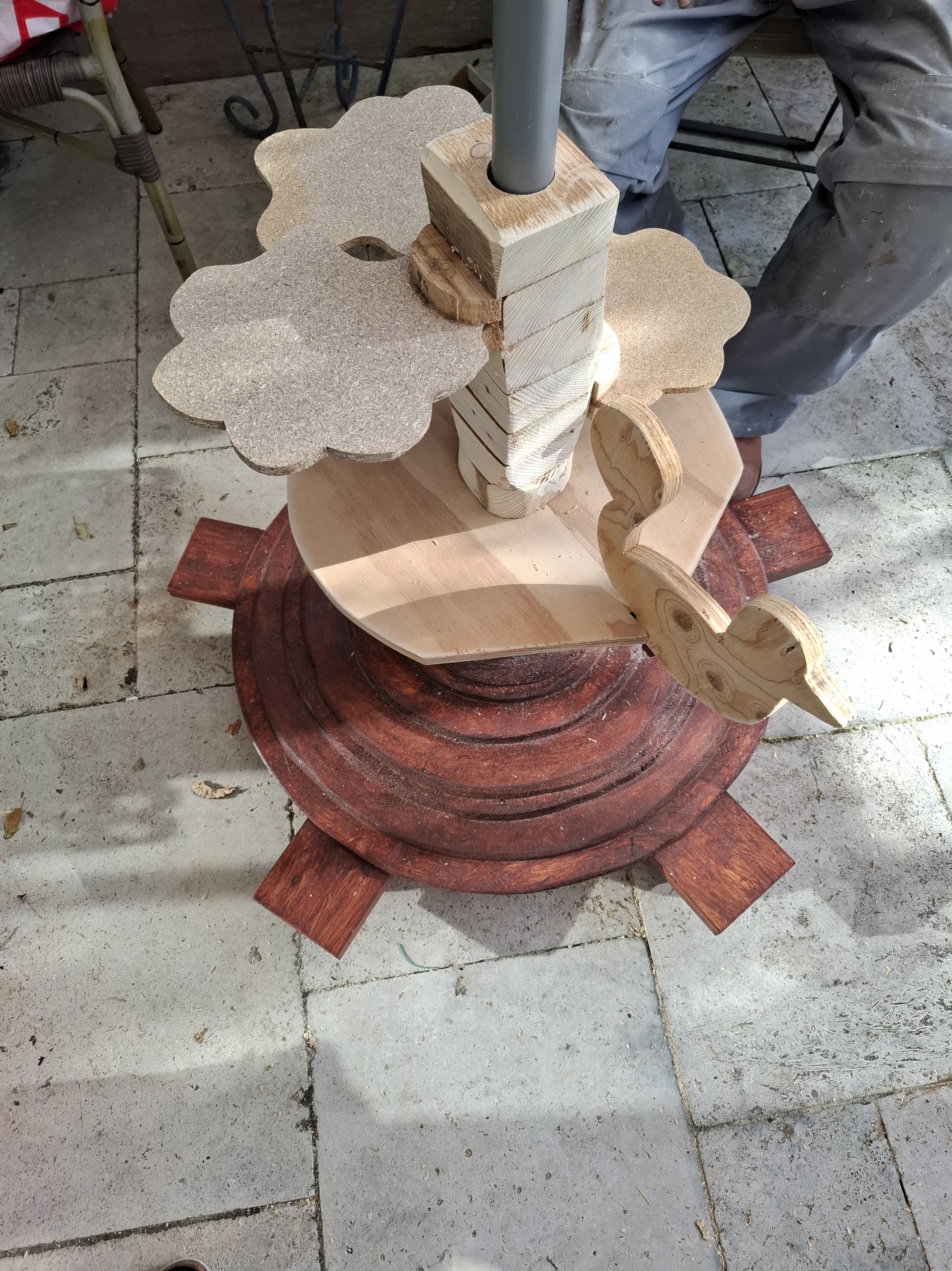 Johanna nam de organisatie op zich en Jan maakte een eerste ontwerp. Het idee was dat kunstenaars van de Kunstkamer takken zouden beschilderen die door Jan verwerkt zouden worden. Buurtbewoners leverden oud hout, Paul Palstra, Elly van der Knoop en Wim Davidse leverden beschilderde takken.